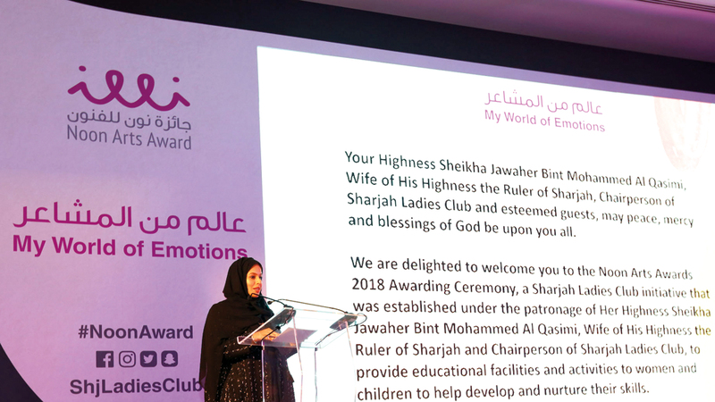 كرمت قرينة صاحب السمو حاكم الشارقة سمو الشيخة جواهر بنت محمد القاسمي، رئيس نادي سيدات الشارقة، الفائزات بـ«جائزة نون للفنون»، في نسختها الثانية التي نظمها «كولاج مركز المواهب»، التابع لنادي سيدات الشارقة، تحت شعار «عالم من المشاعر»، بهدف الاحتفاء بالمواهب الإبداعية الفردية الحرة لدى السيدات والفتيات، في مجالي الرسم والتصوير الفوتوغرافي.