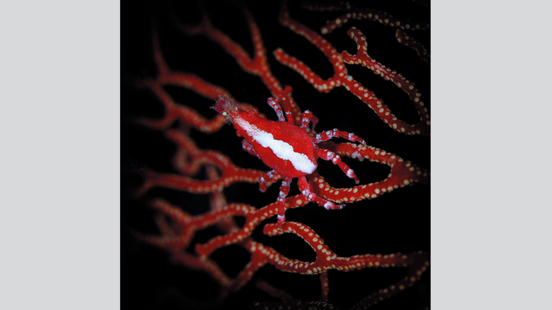 صورة لسرطان صغير ملوّن حجمه لا يتجاوز سبعة ملليمترات.