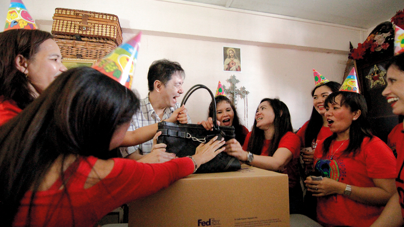 عاملة من الفلبين حصلت في السحب على حقيبة فاخرة. رويترز