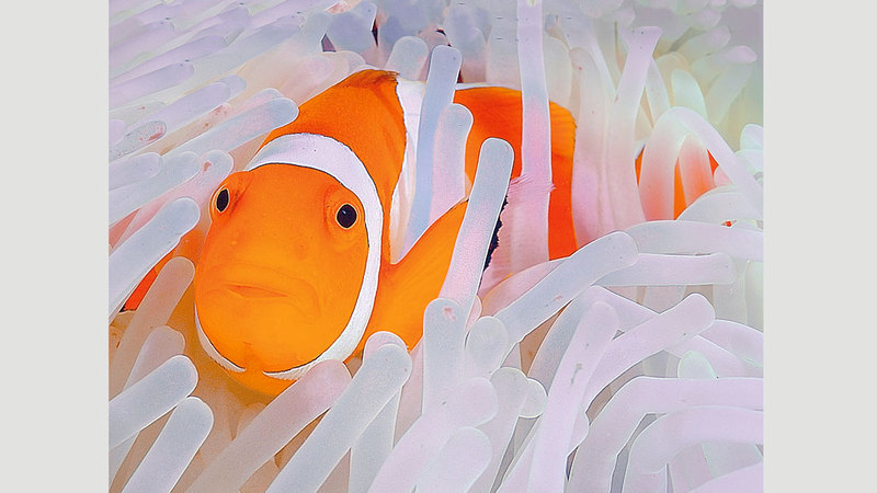 صورة من منطقة وكاتوبي - إندونيسيا لسمكة المهرج وهي تحرس بيضها.