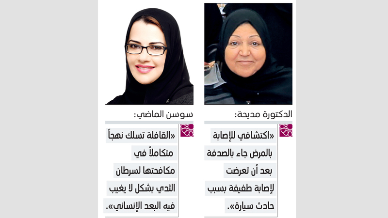 وأضافت: «دائماً ما نعمل في القافلة الوردية على إبراز قصص وتجارب الناجيات من سرطان الثدي، فتسليط الضوء على هذه القصص يساعدنا كثيراً في بث رسائل الوعي والأمل في نفوس السيدات بأهمية الكشف المبكر، ويُسهل مهمتنا في تأكيد أن توفير الدعم للمرضى والوقوف إلى جانبهم في رحلة علاجهم، لا ننقذ من خلاله حياة مريض وحسب وإنما ننقذ به عائلة بأكملها».