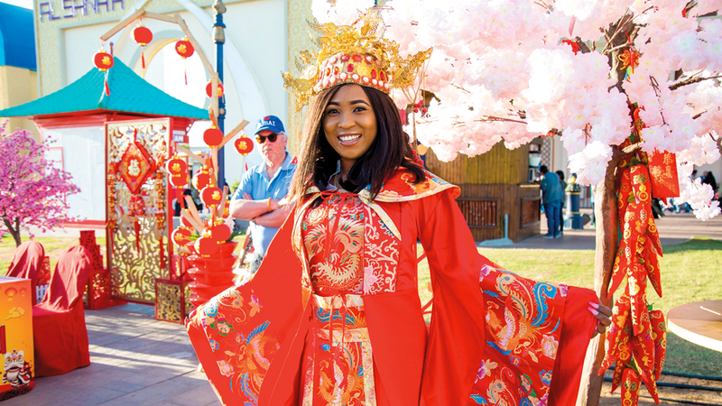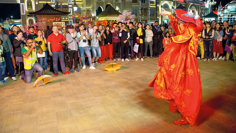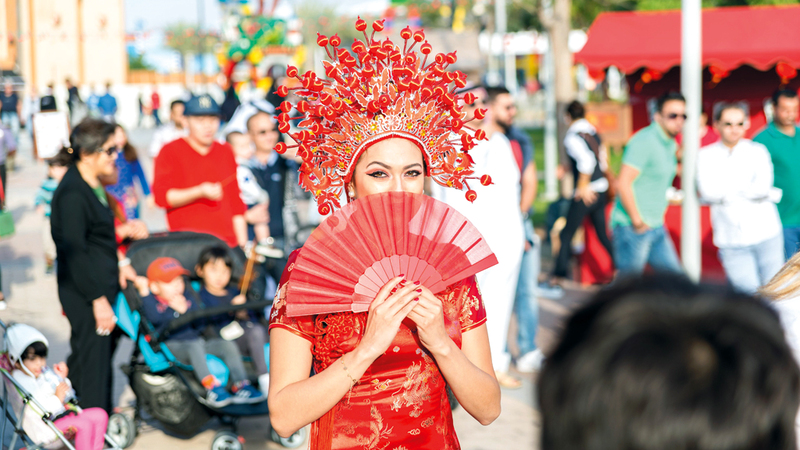 وتواصل القرية العالمية احتفالاتها المخصصة لرأس السنة الصينية الجديدة، عبر العديد من الأنشطة والفعاليات، بعدما استقبلت المناسبة بسلسلة من الفعاليات للأطفال في ممشى الاحتفالات. وشملت مظاهر الاستقبال الزينة الصينية التقليدية والحرف اليدوية التفاعلية والعروض الثقافية. وتشمل الزينة الصينية المميزة جداراً بطول 10 أمتار وارتفاع ثلاثة أمتار مزيناً بالكامل بفوانيس صينية مضاءة، وفرص التقاط الصور التذكارية بالأزياء الصينية التقليدية. كما تُؤدى في القرية رقصة الأسد الصينية وعروض الطبول الثقافية، إضافة إلى عرض تغيير الأقنعة المميز، مع استضافة مجموعة من الشخصيات الكرتونية الصينية التي تلاقي إعجاب المئات من الضيوف. ويمكن للزوّار أن يتفاعلوا مع الفنانين التشكيليين الصينيين الذين يظهرون مهاراتهم في الرسم على المراوح الورقية الصينية، ورسم أقنعة الأوبرا وثني الحديد لصنع مختلف الأشكال الفريدة وتشكيل مجموعة من المجسمات المميزة من خلال أوراق النخيل.
