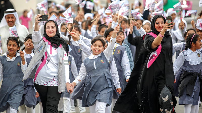 وفي مشهد آخر عكس حجم التفاعل المجتمعي الكبير مع مسيرة فرسان القافلة الوردية، شاركت أكثر من 50 طفلة من أطفال الشارقة دبا الحصن في المسيرة، بالسير على أرجلهن مع الفرسان لنحو 5 كيلومترات، ليؤكدن أن أهداف ورسائل المسيرة باتت مترسخة لدى كل فئات المجتمع كباراً وصغاراً.