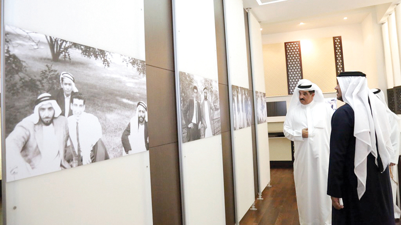 السفير البحريني يطالع صوراً نادرة في قاعة الشيخ زايد. من المصدر