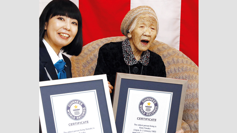 وفي احتفال حضره أفراد أسرتها ومسؤولون محليون، حصلت كاني تاناكا المقيمة في دار رعاية بمدينة فوكوكا في شمال اليابان على شهادتين من موسوعة غينيس بأنها الأكبر سناً بين البشر حالياً، وكذلك أكبر معمّرة في العالم.