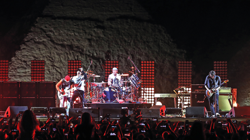 أحيت فرقة الروك الأميركية «ريد هوت تشيلي بيبرز»، حفلاً عند سفح أهرام الجيزة في مصر، أول من أمس، وسط حضور أكثر من 10 آلاف شخص في الموقع.