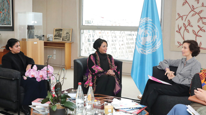 بدور القاسمي التقت مديرة «اليونسكو» خلال زيارتها مقرّ المنظمة في باريس. من المصدر