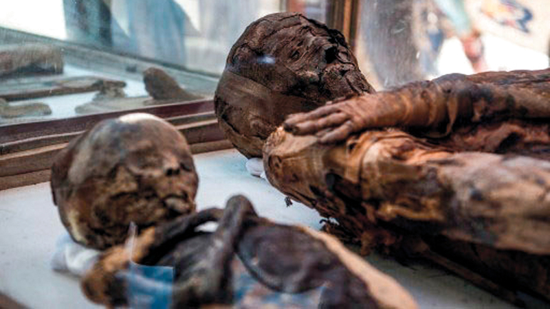 مومياء و50 حيواناً محنطاً، من بينها رفئران وصقور.