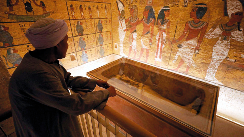 وقال مسؤولون إن المقبرة بنيت لرجل يدعى «توتو» وزوجته، وهي إحدى سبع مقابر، اكتشفت في المنطقة أكتوبر الماضي، عندما ضبطت السلطات مهربين يحفرون بشكل غير قانوني، بحثاً عن آثار.
