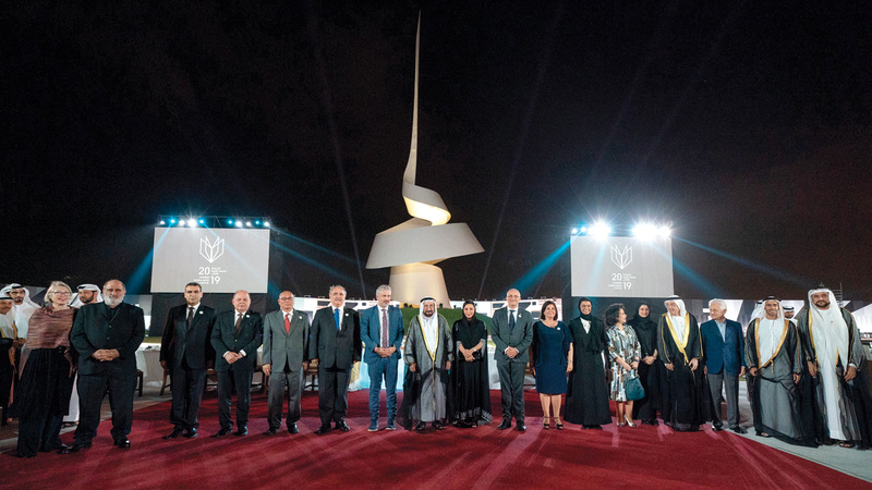 وكان صاحب السمو الشيخ الدكتور سلطان بن محمد القاسمي، قبل العرض، قد دشن النصب التذكاري للشارقة العاصمة العالمية للكتاب لعام 2019، وذلك بمنطقة المدينة الجامعية في الشارقة، بالقرب من نصب الشارقة عاصمة الثقافة العربية، ونصب الشارقة عاصمة الثقافة الإسلامية.