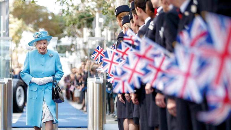 واستقبلت موظفات، يرتدين أزياء الشركة المختلفة من ثلاثينات القرن الماضي حتى اليوم، الملكة إليزابيث، بينما أطلعها مسؤولوها على تاريخ الناقلة البريطانية.