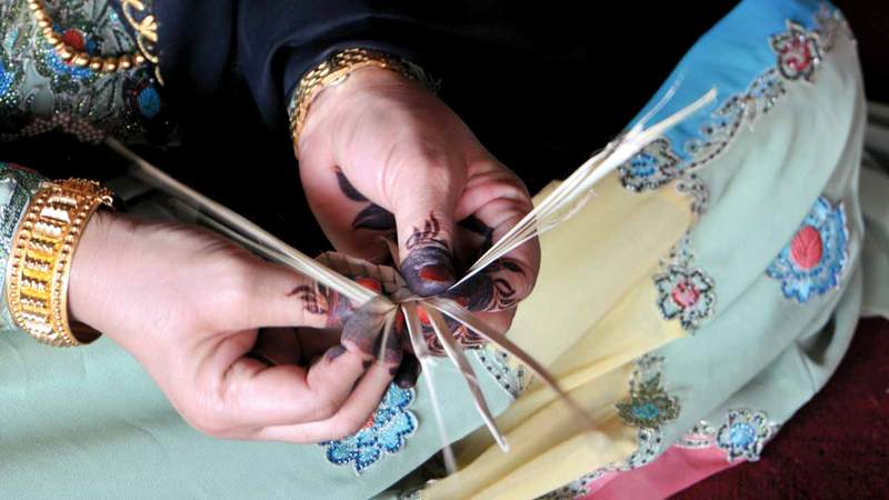 ويتزين الجناح بعدد من الحرف التقليدية، مثل «الغزل» و«السدو»، إلى جانب عرض المنتجات الإماراتية، والحرف اليدوية التقليدية، وطرق تزيين العروس والحناء، وغيرهما.