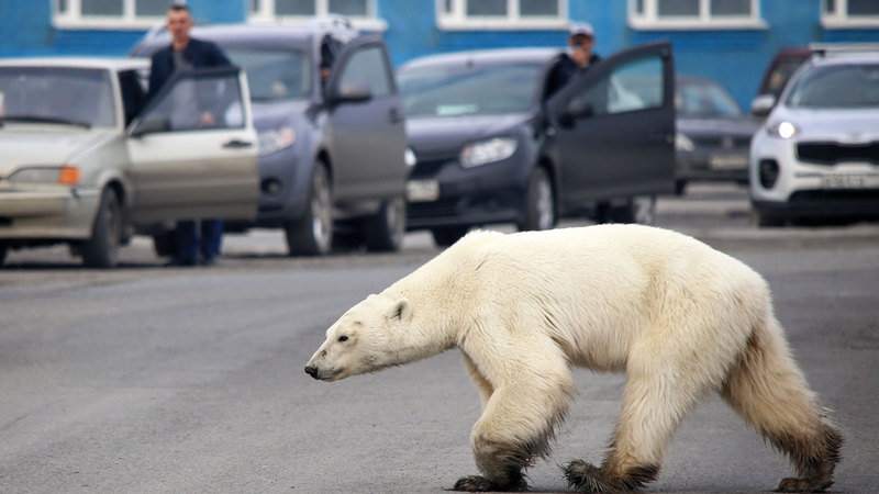 وقال نشطاء محليون معنيون بالبيئة إن هذا هو أول دب قطبي، يظهر في المدينة منذ أكثر من 40 عاماً.