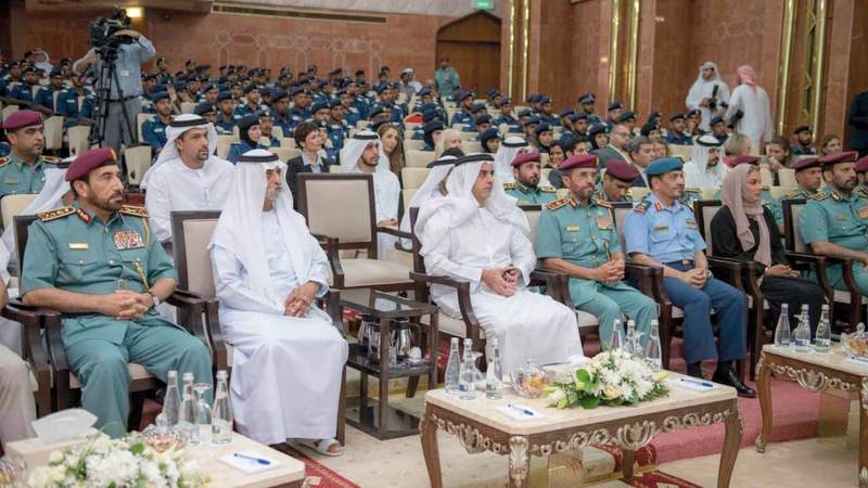 وقال الشيخ نهيان بن مبارك مخاطباً الطلبة: «إن التسامح في الإمارات هو تسامح من الجميع وإلى الجميع لما فيه الخير للجميع، إنكم تجسّدون بدراستكم لهذا المساق أيضاً العلاقة القوية بين التسامح وعناصره ومفاتيحه من جانب، والخصائص المرجوّة في ضابط الشرطة الناجح من جانب آخر، فضابط الشرطة الناجح في هذا العصر لابد أن تكون لديه الرغبة الأكيدة والقدرة الفائقة على التواصل مع مجتمعه، والتعرف الدائم إلى خصائص هذا المجتمع، إضافة إلى القدرة على التعبير الجيد عن أفكاره وآرائه، والاستماع إلى أفكار وآراء الآخرين، والارتباط معهم بقنوات فاعلة للاتصال والحوار، وبناء جسور الثقة وعلاقات الود والتراحم، كما أن ضابط الشرطة الناجح لابد أن تكون لديه القدرة على ضبط النفس والتفكير السليم والملاحظة الثاقبة واتخاذ القرارات الصعبة، والتمسك بالقيم والأهداف الأصيلة، والقدرة على التفاوض وحل المشكلات والصراعات في سلام ووفاق، كما لابد أن يكون حريصاً على التعلم المستمر، والولاء الكامل للدين الحنيف، وللأسرة وللوطن ولشعب الإمارات، وللأمتين العربية والإسلامية وللقيم الإنسانية النبيلة، ويكون قادراً على اتخاذ ذلك كله لتحقيق التعايش والسلام والوفاق في المجتمع والعالم».