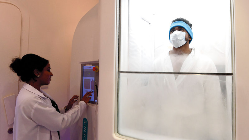 خبيرة العلاج الفيزيائي في «كريو هيلث»، أول منتجع صحي مخصص للعلاج بالتبريد، لمى أحمد، تحدثت لـ«الإمارات اليوم»، عن هذا العلاج وفوائده الكثيرة، وقالت: «هناك طريقتان لتنفيذ علاج التبريد، الأولى تكون مع جهاز التبريد الخاص بالجسم كاملاً، الذي يدخل إليه الشخص، بعد أن يرتدي جوارب ويضع قناعاً على الأنف والفم، ويتعرض لدرجة حرارة تبدأ من 110، وتصل إلى 140 درجة تحت الصفر، وهو يحمل العديد من الفوائد، ولهذا تختلف أهداف الذين يخضعون لهذا العلاج، علماً بأن مدة الجلسة لا يجب أن تتعدى الثلاث دقائق، كونها المدة القصوى لإمكانية التعرّض لهذه الحرارة المنخفضة». وأضافت: «يتحمل الناس هذه الحرارة المنخفضة جداً، من خلال توفير المحفزات للبقاء داخل الغرفة، فيتم وضع الموسيقى المفضلة لهم، كما أن المعالج المرافق يحفزهم من الخارج، بينما بعد الخروج نسمع من الناس كثيراً من التعليقات المختلفة حول تأثيره، فمنهم من يشعر بالجوع، أو منهم من ينام جيداً بعد الجلسة». ولفتت أحمد إلى إمكانية القيام بالجلسات بشكل يومي، على أن يقوم المرء بجلسة واحدة، حداً أقصى في اليوم، بينما ينصح بالعلاج بجلستين إلى ثلاث أسبوعياً، ويمكن الخضوع لعدد أكبر من الجلسات، في حال كان الهدف خسارة الوزن بشكل سريع.