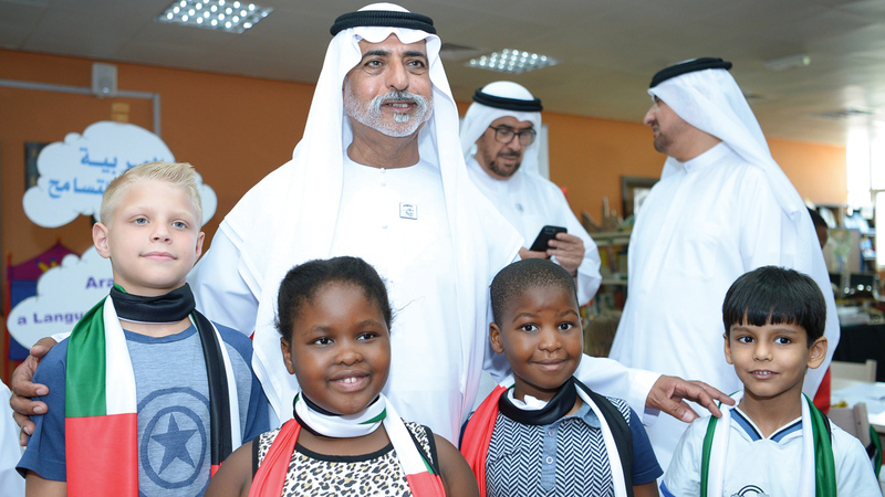 شارك الشيخ نهيان بن مبارك آل نهيان، وزير التسامح، أمس، طلاب المدارس الخاصة في العين من الناطقين باللغة العربية وغير الناطقين بها، في مبادرة «اللغة العربية لغة التسامح» التي أطلقتها وزارة التسامح بالتعاون مع جامعة الإمارات وعدد من المدارس الخاصة بمدينة العين، لتكون واحدة من أهم الأنشطة الصيفية بالمدارس، بحضور الرئيس الأعلى لجامعة الإمارات، سعيد أحمد غباش، والمدير العام، عفراء الصابري، ومدير جامعة الإمارات، الأستاذ الدكتور محمد البيلي، ومديرة التطوير بمركز التعليم المستمر، نورة الكويتي، ورئيس وحدة برامج اللغة العربية المشرف على مبادرة «العربية لغة التسامح»، الدكتور إبراهيم محمد علي، ونائب المدير العام لمدارس الإمارات الوطنية، أحمد البستكي، وعدد من قيادات وزارة التسامح، حيث استمع الشيخ نهيان بن مبارك، لشرح حول أهداف المبادرة وآلية تنفيذها، ومدى استفادة الطلبة منها، كما أجرى حواراً مع الطلبة المشاركين، لمس من خلاله مدى استيعابهم للمبادرة وتطور مستواهم في اللغة العربية.