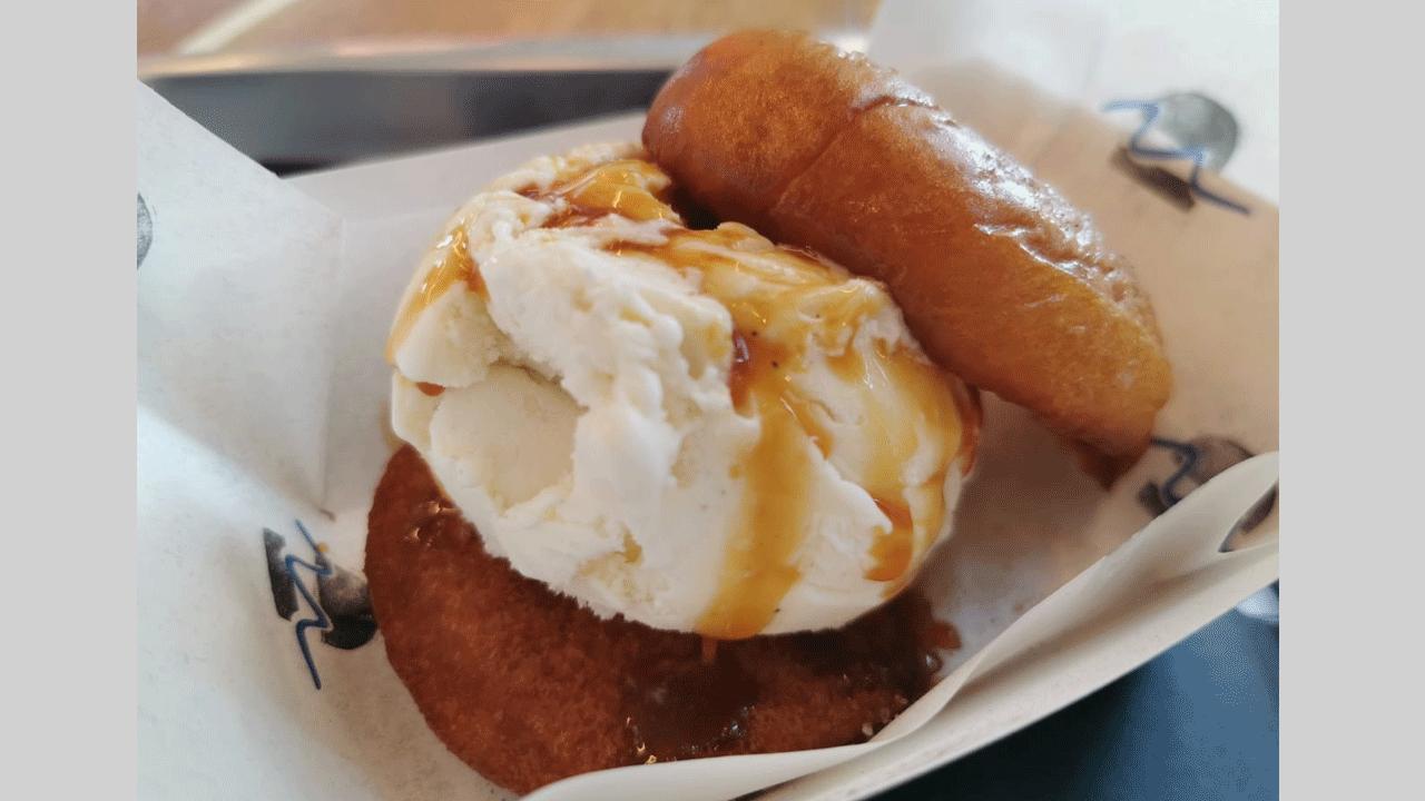 ومن ضمن أنواع البرغر التي يقدمها المطعم، ثمة نوع غريب يلفت أنظار زواره، وهو برجر آيس كريم بخبز محلى، ومعد بأسلوب استثنائي يشكّل إضافةً لما تقدمه مطاعم البرجر بالدولة.