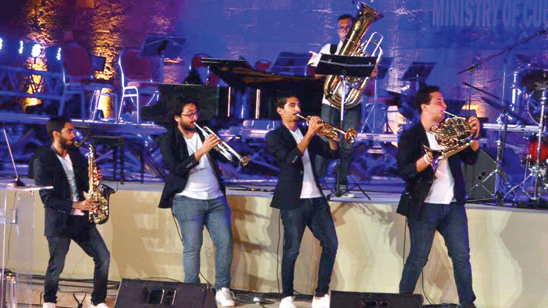 فريق براس ساوند باند قدم معزوفات لأغانٍ غربية ومصرية في افتتاح المهرجان. وكالات