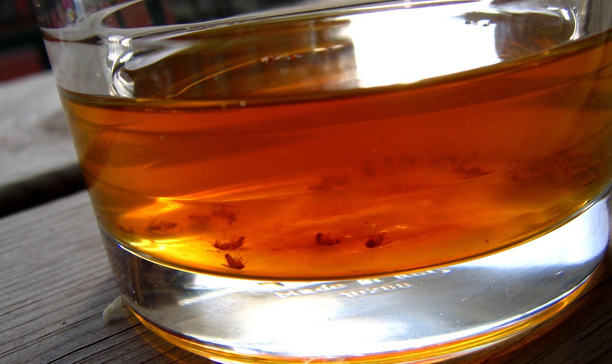 وبعد ساعات لاحقة عدة ستلاحظ أن حموضة وحلاوة عصير التفاح جذب أغلب الذباب، في حين أن سائل الغسيل سيجعل من الصعب على الذباب الوقوف على المياه.