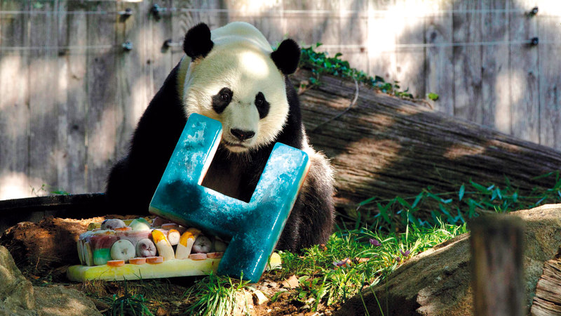 قدّمت سلطات الحديقة الوطنية بالعاصمة الأميركية واشنطن قطعة من الكعك الملون لحيوان باندا عملاق على شكل رقم أربعة، احتفالاً بعيد ميلاده الرابع أول من أمس. وكانت هذه المناسبة حلوة ومريرة في الوقت نفسه لـ«بي بي»، ذلك الباندا الذي ولد في 22 أغسطس عام 2015 من الوالدين مي تشيانج وتيان تيان.
