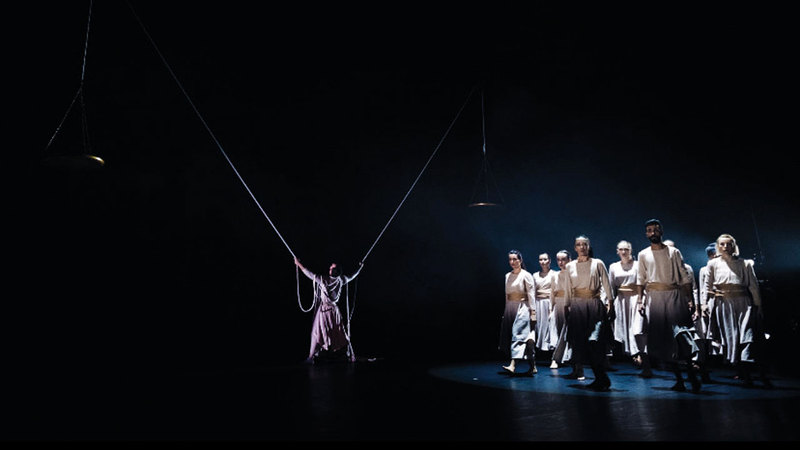 واعتمد كريميد في عرضه الأخير الذي تواصل لنحو ساعة، على 10 راقصين قدموا دراما خالصة من خلال تعبيرات معاصرة بنيت على محورين؛ الأول بوجود مجسم لميزان نحاسي يتوازن قليلاً، ويختل فيما يشبه ملحمة صراع بين البشر، والمحور الثاني إيحاء مبني على كتابات الفيلسوف الكندي آلان دينولت.