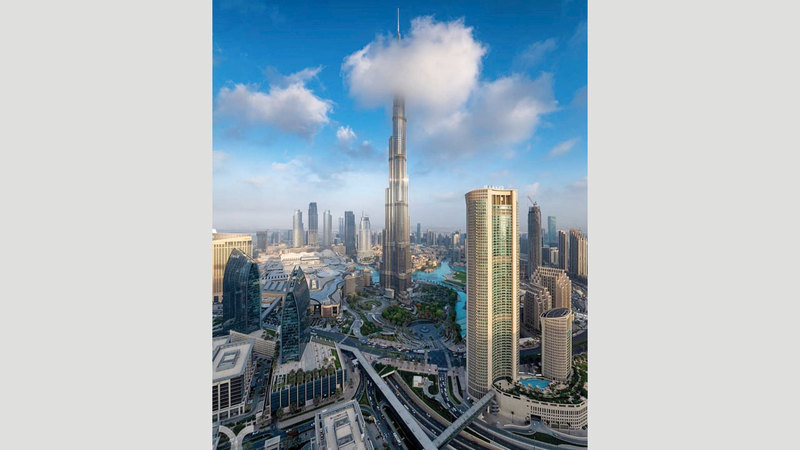 برج خليفة في دبي يعانق السحاب لتكتسي قمة أطول برج في العالم ببياض ناصع، في مشهد جمالي يتجدّد دوماً.