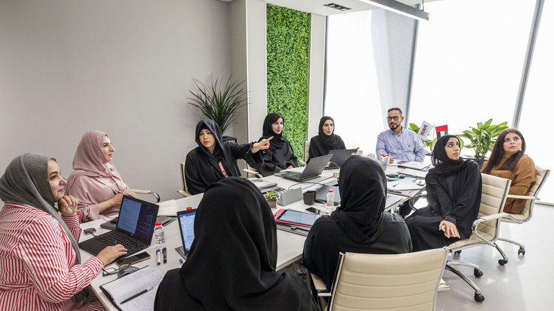 لطيفة بنت محمد مع فريق عمل «الهيئة». من المصدر