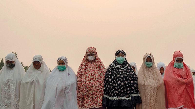 وأدت بعض المجتمعات المحلية صلاة الاستسقاء، على أمل انتهاء موسم الجفاف والضباب المصاحب له. وأدى الآلاف في بيكانبارو، في إقليم رياو بسومطرة، صلاة الاستسقاء أمام مكتب الحاكم. وذكرت «أنتارا» أن الكثير منهم ارتدى أقنعة واقية من الدخان.