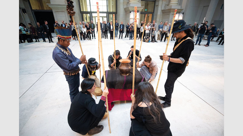 وبحضور نحو 400 ضيف، أقيم الاحتفال أمس، في متحف «منتدى هومبولت» غير المكتمل حتى الآن، وهو قصر يُعاد ترميمه في وسط برلين بكُلفة تبلغ نحو 600 مليون يورو.
