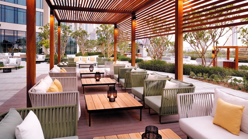 تتوافق التصميمات الداخلية الأنيقة مع القائمة، التي تقدم مجموعة متنوعة من الأطباق الصحية، مع استخدام القوام الطبيعية في جميع أنحاء المطعم، لتكوين جو دافئ ومرحّب. يسيطر الخشب الخام والناعم على التصميمات الداخلية للمطعم، وتتجلى الجمالية الأنيقة مع الأدوات النحاسية، والديكورات الداخلية الجلدية والمساحات الخضراء المنتشرة في جميع أنحاء المطعم، ما يخلق مركزاً اجتماعياً في مجمع تلال الإمارات.