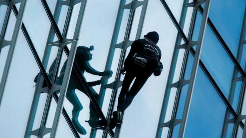 وبحسب شهود عيان، استغرق الأمر نحو 20 دقيقة من روبير، ليتسلق مبنى «سكايبر» في الحي المالي وسط المدينة.