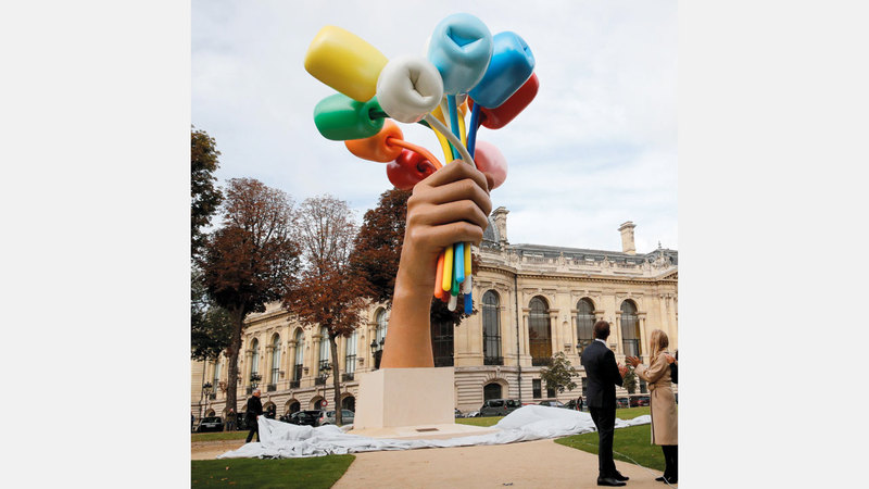 أهدى الفنان الأميركي جيف كونز العاصمة الفرنسية باريس منحوتة تصور يداً ضخمة ممسكة بباقة من زهور التيوليب الملونة، تكريماً لذكرى ضحايا هجمات نوفمبر 2015.