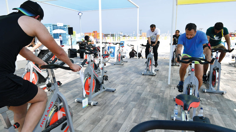 وشارك فريق دراجات شرطة دبي في افتتاح التحدي في قرية اللياقة البدنية بشاطئ كايت بيتش.
