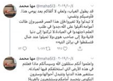 ولا يعرف الكثير عن مها الحربي التي جرى تداول مشاركاتها بتغريدات على "تويتر"، ووصفها رواد السوشيال ميديا بـ "الفتاة الصالحة".
