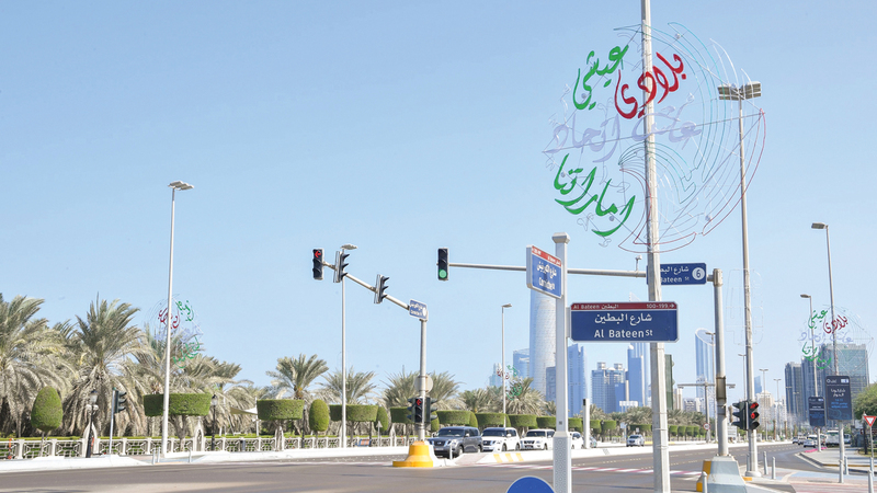 ضمن استعداداتها للاحتفال باليوم الوطني الـ48 لدولة الإمارات، شارفت بلدية مدينة أبوظبي على الانتهاء من تزيين العاصمة وضواحيها بآلاف الأعلام والتشكيلات الهندسية الضوئية من الأنوار.
