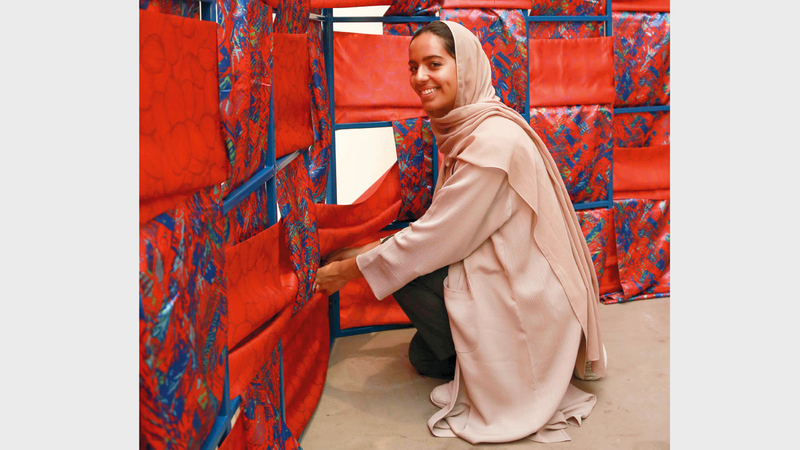 وقالت فاطمة المحمود لـ«الإمارات اليوم»: «إن الاحتفاء بنخيل التمر هو موضوع قريب جداً لنا، ولدينا ارتباط وثيق بها، هي تلك الجميلة التي لطالما أمدت مجتمعاتنا بالكثير، سواء في التغذية، أو حامية لنا كمأوى، أو في التفاصيل والاحتياجات والأدوات اليومية»، مضيفة أن «الأعمال المعروضة خلال المعرض، إضافة إلى تصميمه، وفكرة البحث التي تمت بغرض تطوير أقمشة مستدامة، فاقت كل توقعاتنا، ونحن سعداء بمشاركة هذه الأعمال والنتائج مع زوار المعرض والمهتمين».