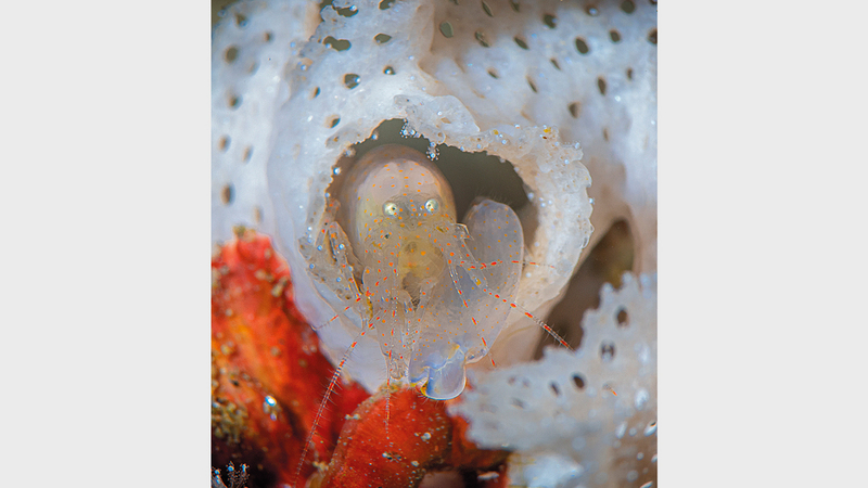 قاع المحيطات والبحار عبارة عن سهول وسلاسل من الجبال المغمورة، مكوّنة أودية ومنحدرات عميقة، تكسوها الأشكال المرجانية أو الغابات النباتية الطويلة، وهناك أيضاً بعض الشقوق العميقة المتعرجة، وتسمى «خانق»، تندفع منها مياه كبريتية ساخنة، من باطن الأرض صاعدة إلى السطح، وتأخذ شكل الشلالات المقلوبة، هذه المياه الكبريتية ذات قيمة غذائية كبيرة للكائنات البحرية. صورة لنوع من الروبيان الصغير جداً والذي لا يتجاوز السبعة مليمترات.