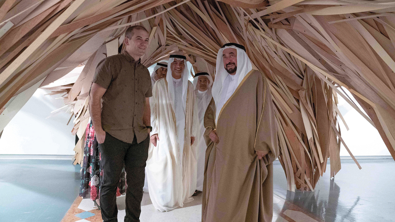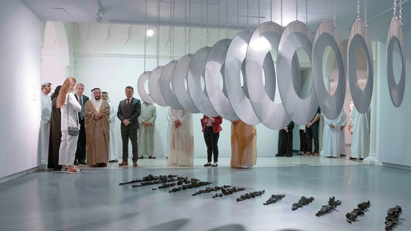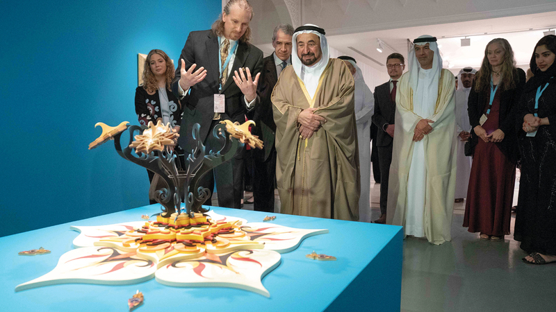 واستمع صاحب السمو حاكم الشارقة خلال جولته من القائمين على المعرض والفنانين المشاركين لشرح مفصل حول الأعمال، وما تعبر عنه وما تحمله من رسالة، وما تشكله من فن.
