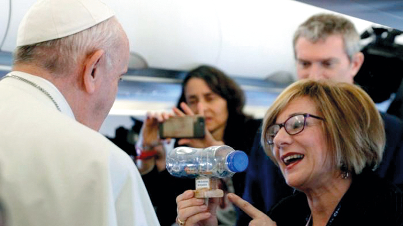 وفي رحلة البابا إلى اليابان وتايلاند الشهر الماضي كان يوجد نحو 70 صحافياً على متن الطائرة، وفي مرحلةٍ ما سار البابا في ممر الطائرة ليحييهم، حيث صافحهم واحدا واحدا، بل وقبَّل بعضهم ممن يعرفهم منذ سنوات، وسأل عن أبنائهم، وأطلق النكات وبارك صور أشخاص مرضى من أقارب الصحافيين أو أصدقائهم أو زملائهم جلبوها معهم من أجل ذلك، وقدم كثيرون الهدايا له أو طلبوا منه توقيع تذكارات لهم، أو أن يلتقطوا صوراً شخصية (سيلفي) معه.
