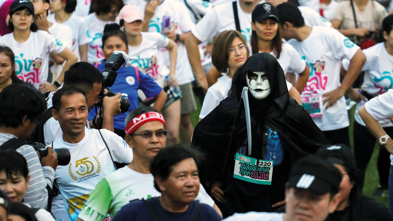 شارك آلاف التايلانديين، أمس، في مهرجان للركض وُصف بأنه احتجاج مناهض للحكومة في ما يبدو أنه أكبر استعراض للمعارضة ضد حكومة رئيس الوزراء برايوت تشان أوتشا الحاكم العسكري السابق للبلاد. ووصل آلاف العدائين إلى متنزه عام في بانكوك بملابس رياضية للمشاركة قبيل شروق الشمس في مهرجان «الركض ضد الدكتاتورية». وقال منظمون إن أكثر من 10 آلاف شخص سجلوا أسماءهم للمشاركة في المهرجان. وهتف كثيرون «تحيا الديمقراطية».