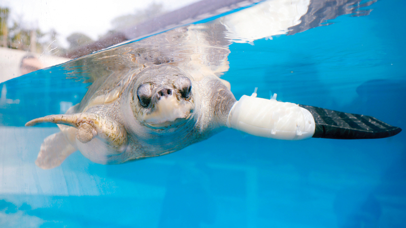 سلحفاة تعود للعوم بزعنفة اصطناعية
