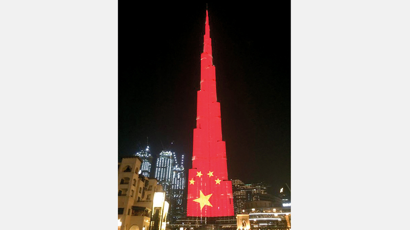 معالم إماراتية تتوشّح بألوان العلم الصيني