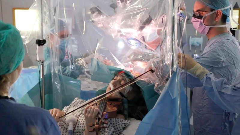 مريضة تعزف الكمان أثناء خضوعها لجراحة في الدماغ