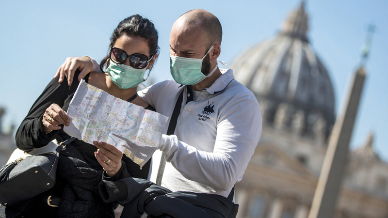 على الرغم من المخاوف والتحذيرات العالمية من مخاطر اتساع رقعة انتشار فيروس «كورونا» إلا أن ذلك لم يمنع الآلاف حول العالم من متعة السفر والسياحة، ولكن مع أخذ أقصى درجات الحذر، واستخدام الكمامات الواقية، وانتشرت على نطاق العالم صور السيّاح المكمّمين الذين يلتقطون الصور قرب المعالم السياحية البارزة.