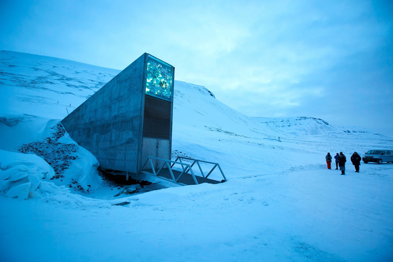 وأقيم بنك البذور الذي تملكه 35 مؤسسة إقليمية ودولية في منطقة جبلية من لونغييربين، في جزر سفالبارد التابعة للنرويج والواقعة في أقاصي شمال كوكب الأرض على بعد أقل من 1000 كيلومتر من القطب الشمالي.