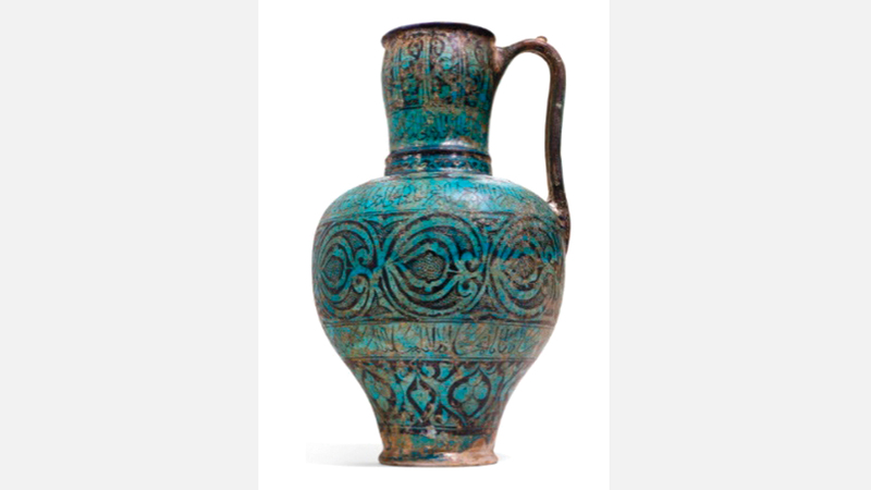 إبريق كاشان من الفخار المصقول بالفيروز، تقريباً منذ عام 1200 - 1220 ميلادية، فارس (السعر المقدر 120 - 160 ألف جنيه إسترليني).
