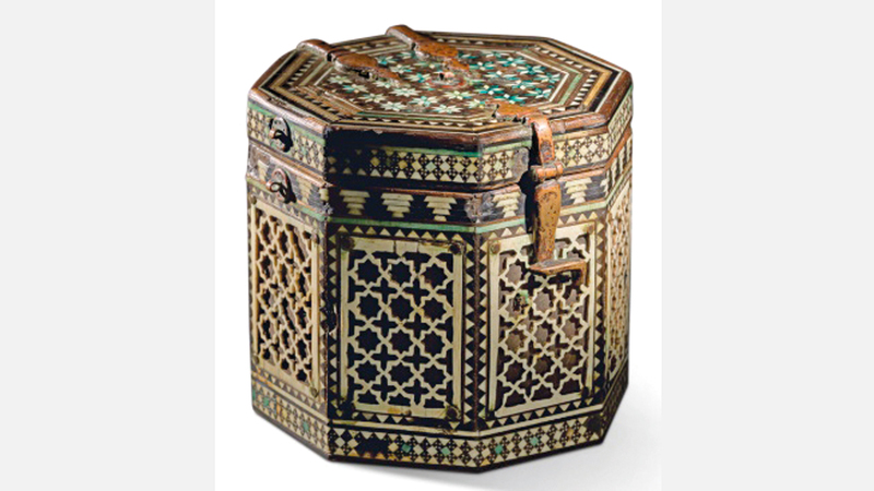 يعد هذا الصندوق ثماني الأضلاع، الذي لم يتم نشره من قبل، من أوائل مظاهر الأسلوب الزخرفي الذي يرتبط غالباً بالمنطقة المسلمة في البحر الأبيض المتوسط في العصور الوسطى، حيث سيتم عرضه للمرة الأولى في مزاد علني، بعدما ظل في المجموعة نفسها منذ سبعينات القرن الماضي. تتميز القطع الأثرية من هذه الفترة من تاريخ الأندلس بندرتها، وتجمع هذه القطعة مع مجموعة صغيرة من الأعمال الخشبية التي يعود تاريخها إلى أواخر القرن الـ12 أو أوائل القرن الـ13، والتي استخدمت الفسيفساء الجزئي التقليدي والقشرة الزخرفية.