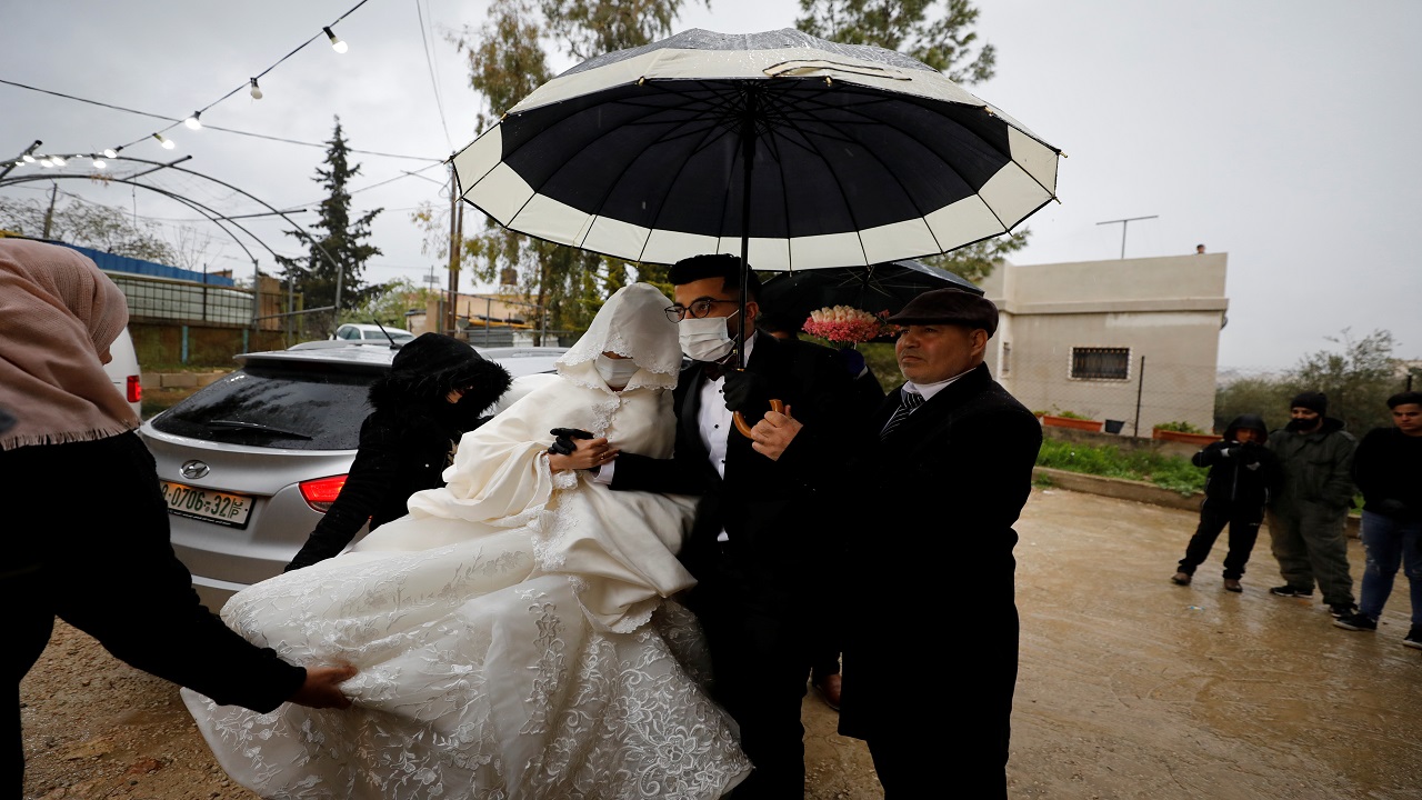 على الرغم من أنهما يعيشان في الضفة الغربية المحتلة، المغلقة بسبب المخاوف المتعلقة بنفشي فيروس كورونا المستجد، قرر الفلسطينيان عماد شرف وبراء العمارنة أن يتحديا الخوف ويتزوجا في هذه الظروف.