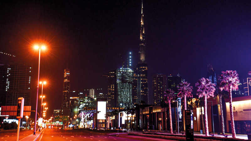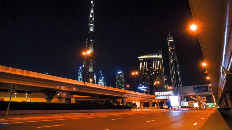 مشاهد من المدينة التي لا تنام.. دبي الجميلة في صورها كافة، خلال الليلة قبل الماضية، وقد خلت شوارعها، بعد أن استجاب سكانها لدعوات البقاء في المنازل، خلال البرنامج الوطني للتعقيم الذي انطلق أول من أمس، ويستمر حتى صباح الغد.