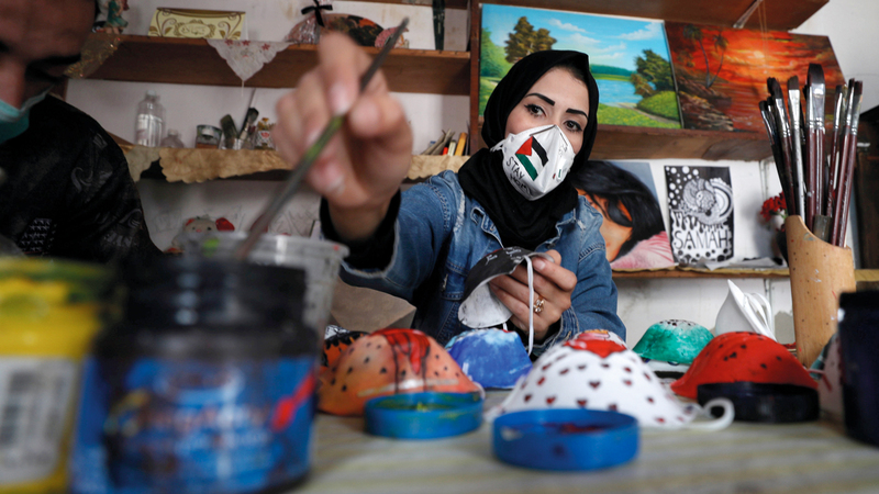 فنانو غزة يحاربون «كورونا» بكمامات ملونة وثلاثية الأبعاد